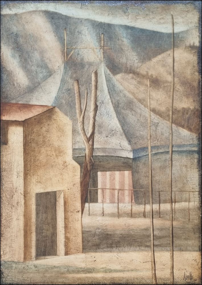 SCUFFI MARCELLO Quarrata 1948 - 2021 "Senza titolo" Olio su tela cm 50x70. Firmato sul fronte in basso a destra. Certificato di garanzia ed autenticità con numero d'archivio, a cura della Galleria Spagnoli (Firenze).