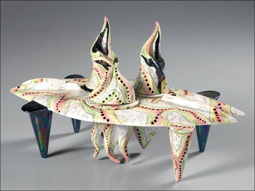 BERTOZZI GIANPAOLO & CASONI STEFANO "Calamaio" Scultura in ceramica policroma cm 23x40x19, del 1980. Opera unica firmata Bertozzi e Casoni. Sul fondo marchio Coop. Ceramica Imola/Centro Internazionale Italy.