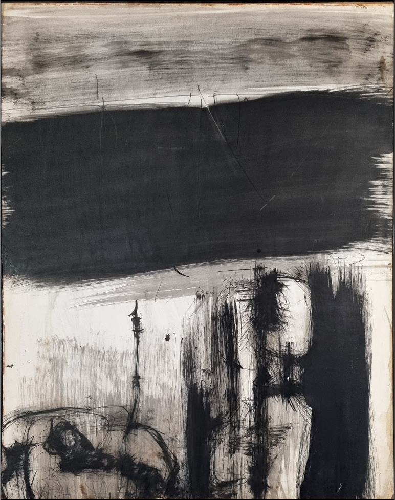SCANAVINO EMILIO Genova 1922 - Milano 1986 "Senza titolo" China su carta applicata su tela cm 50x63, del 1959. Certificato di autenticità e d'archivio su foto, a cura dell'Associazione "Amici dell'Archivio Emilio Scanavino".