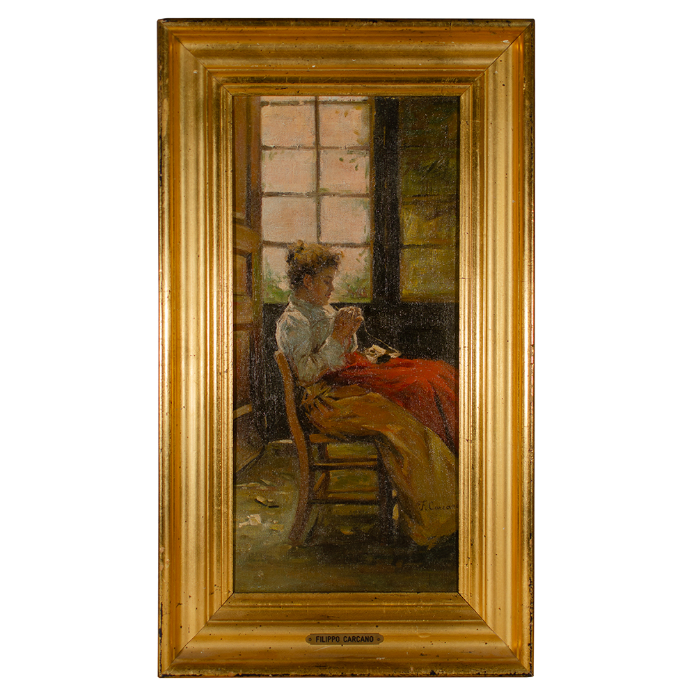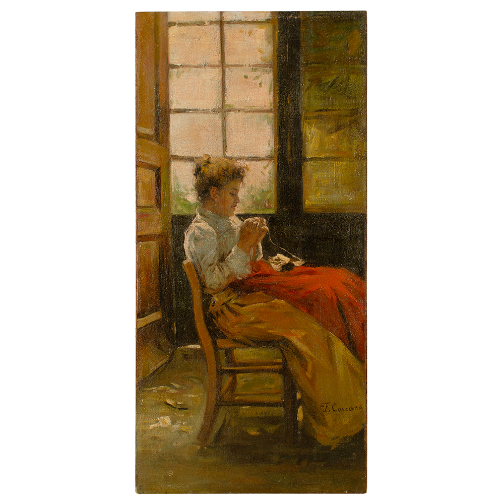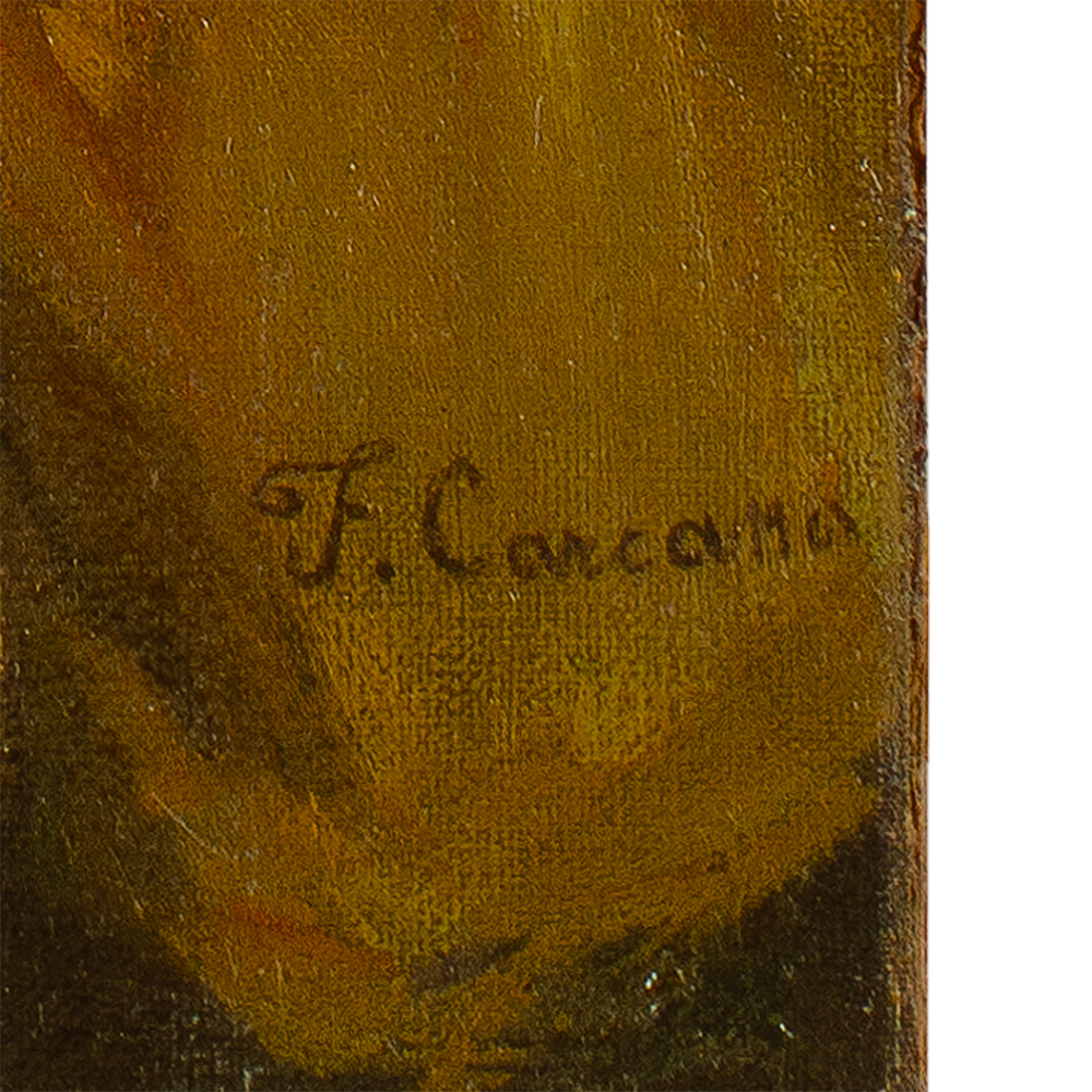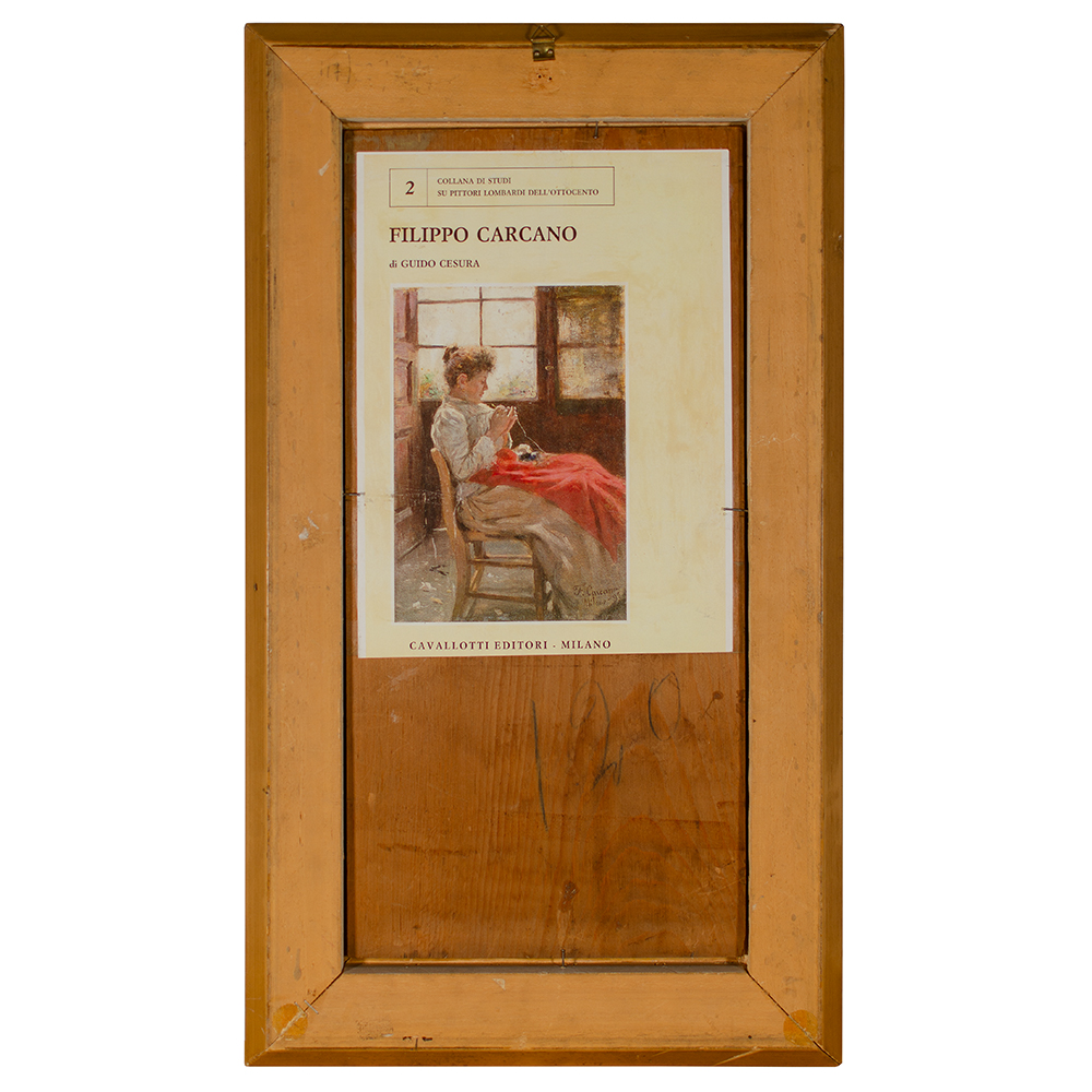 olio su tela applicata su tavola, cm 45,6x22,5.