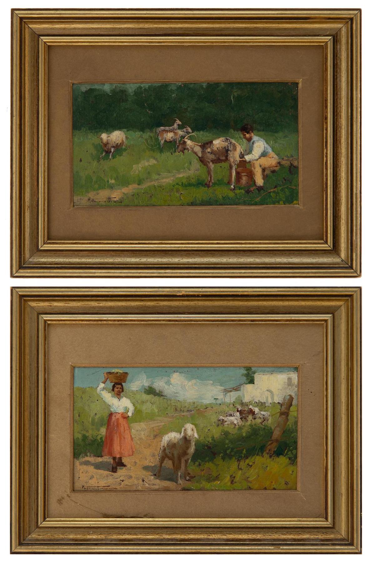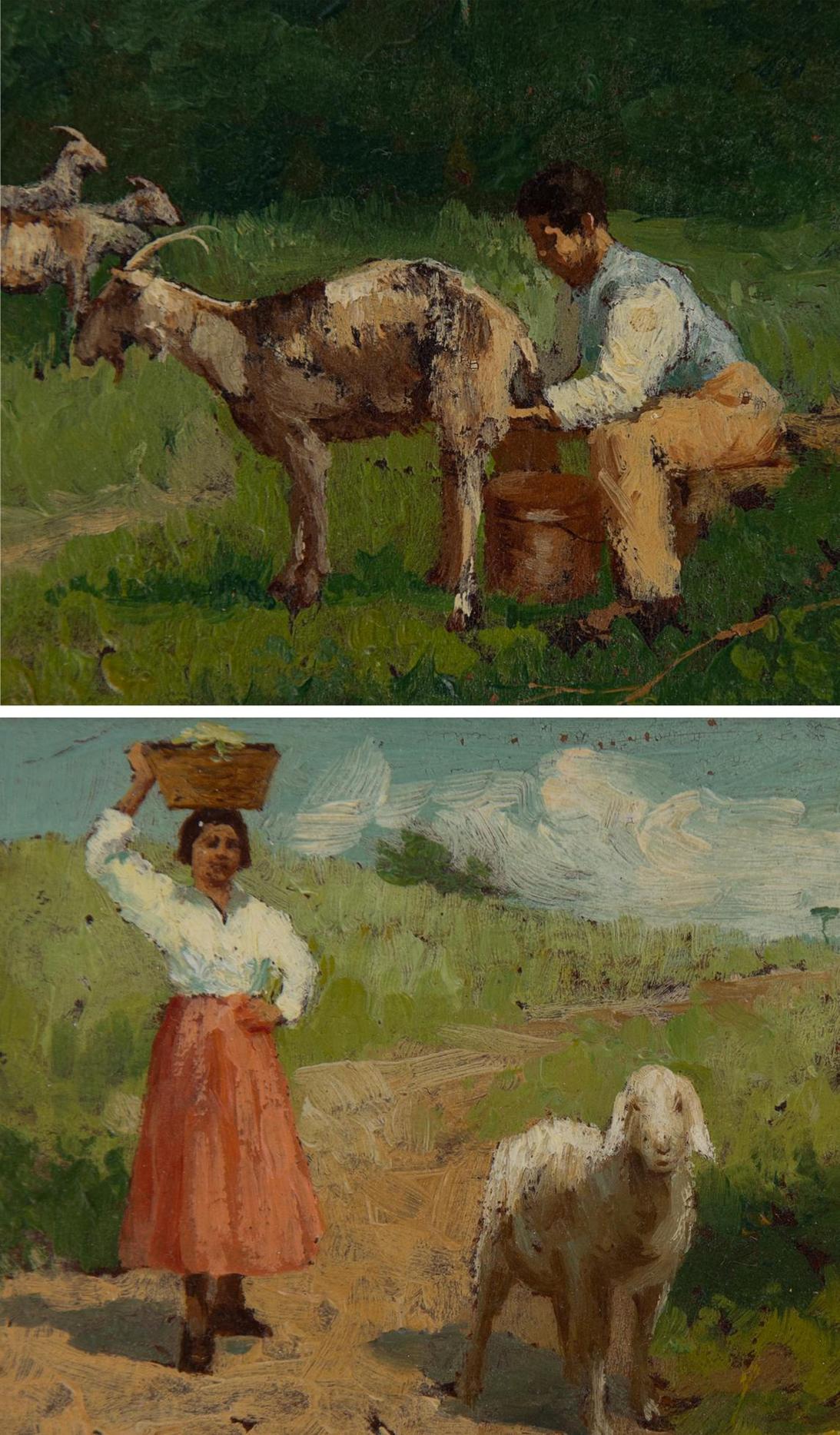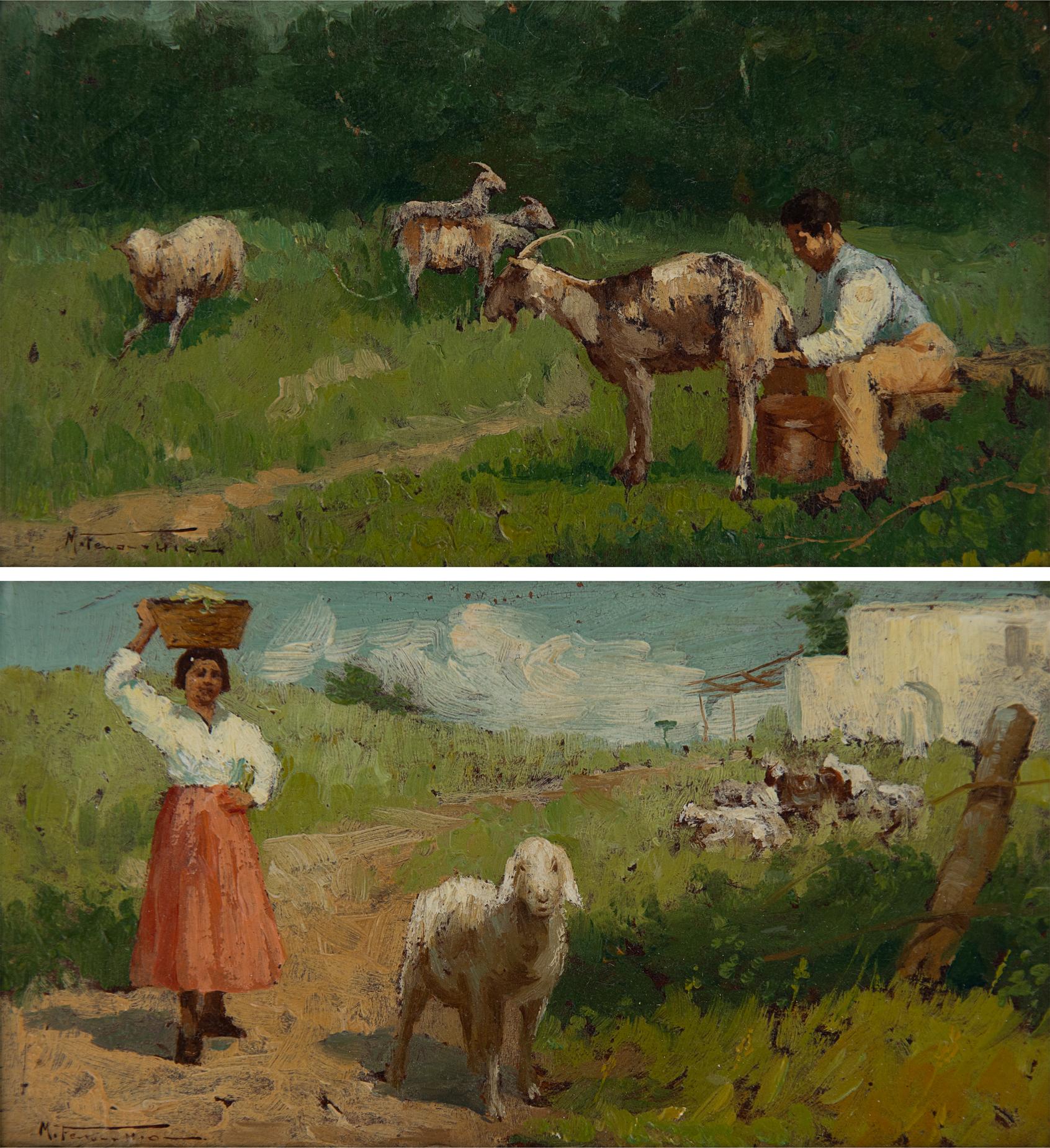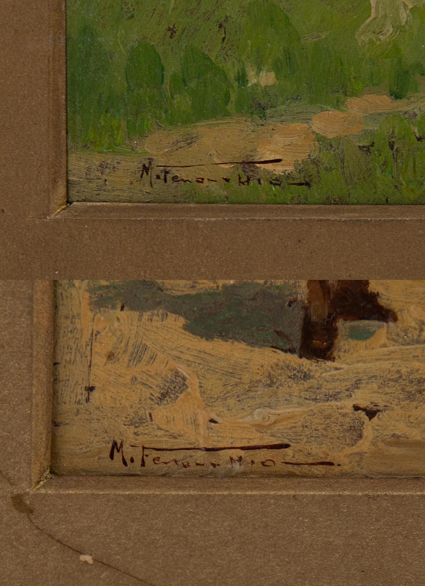 Mario Fenocchio - Vita di campagna - XIX secolo - Olio su cartone cm 8x14