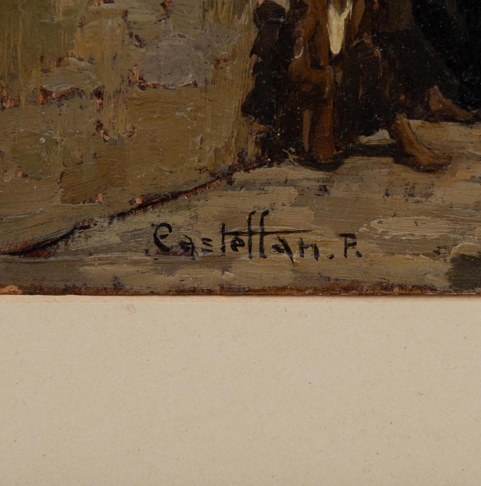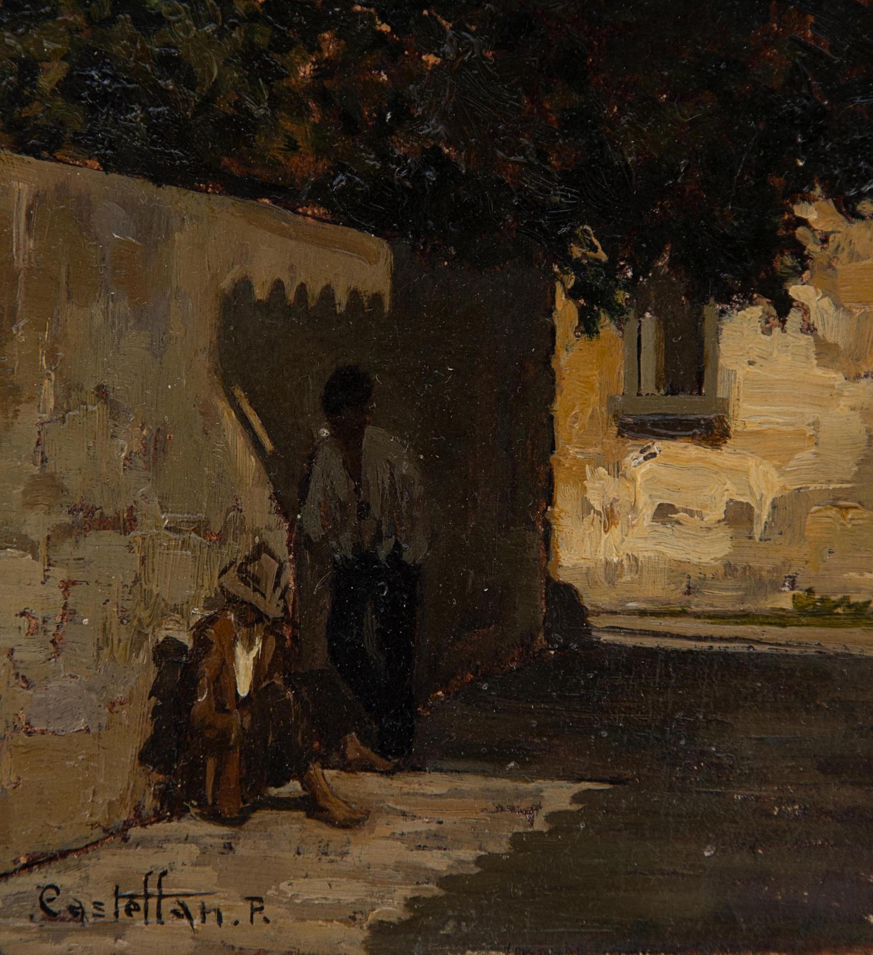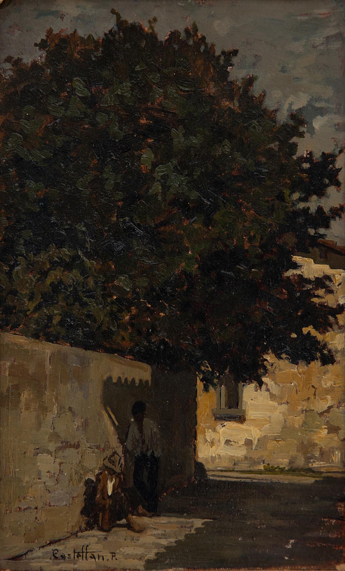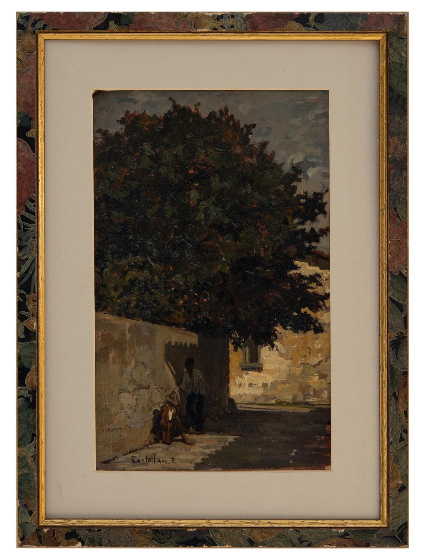 Paride Castellan - Via di paese - Gradisca d'Isonzo (Go) 1911 - Firenze 1988 - Olio su cartone cm 28,5x17,5