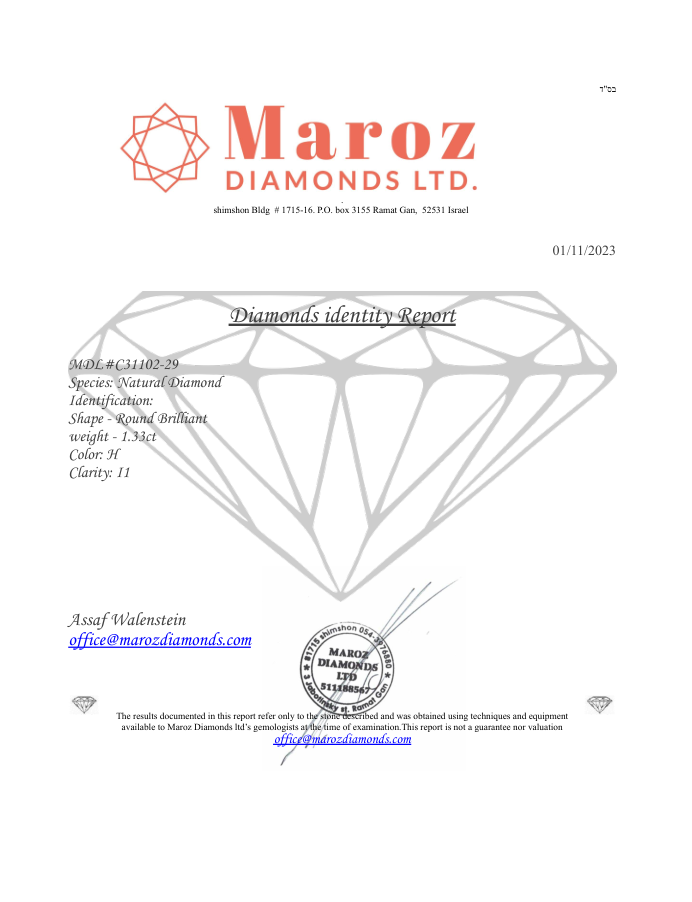 Lotto 37 | DIAMANTE 1,33 CT H - CLARITY I1 - C31102-29