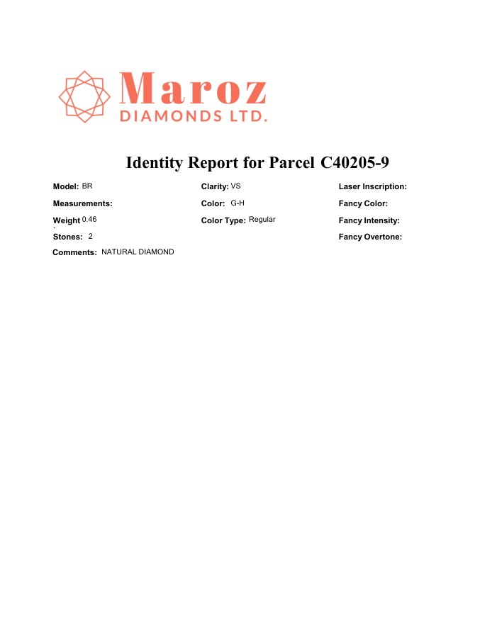 2 DIAMANTI 0,46 CARATI COLORE G-H - PUREZZA VS - TAGLIO BRILLANTE - CERTIFICATO GEMMOLOGICO MAROZ DIAMONDS LTD MEMBRO ISRAEL DIAMOND EXCHANGE - C40205-9