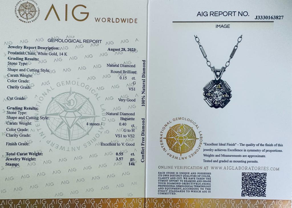 GIROCOLLO IN ORO BIANCO 14K 3.57 GR CON DIAMANTI PER 0.40 CARATI TAGLIO BUGGETTE + DIAMANTI PER 0.15 CARATI TAGLIO BRILLANTE GVS VINTAGE CERTIFICATO AIG - PND30406