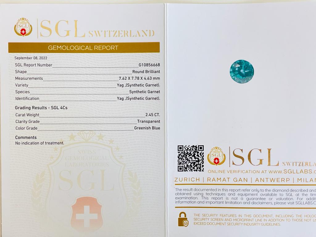 GRANATO SINTETICO 2,45 CARATI TAGLIO BRILLANTE - CERTIFICATO SGL - PS10707-3