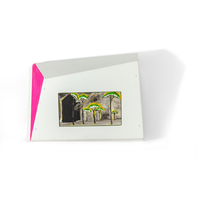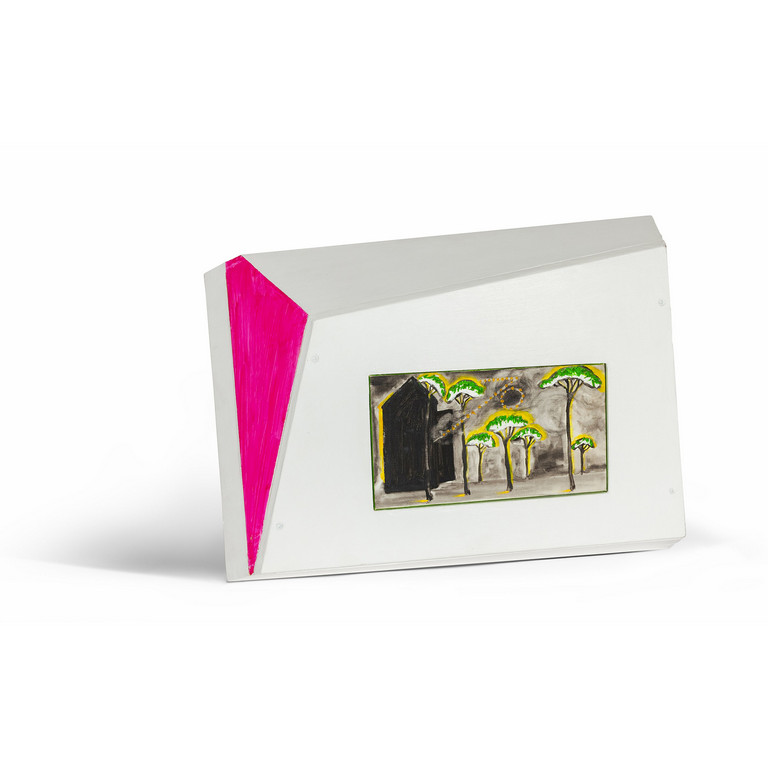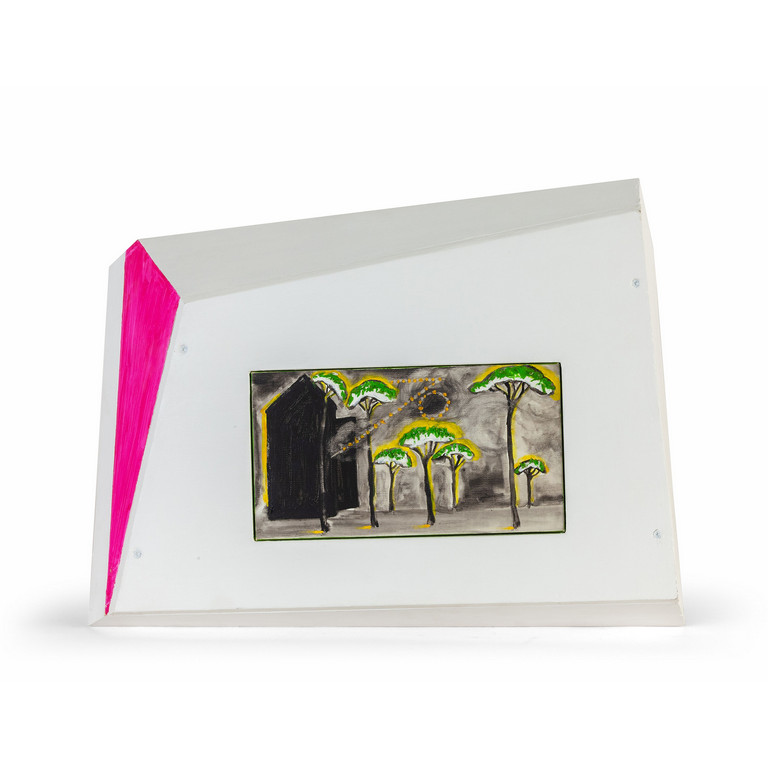 oil on canvas on architectural structure on painted wood 9 05x22 04x14 76 in (canvas 5 9x11 22 in)