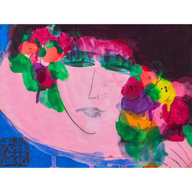 tempera grassa su carta cm 19 5x25 5 (con cornice dipinta dall'artista cm 41 5x49 5)