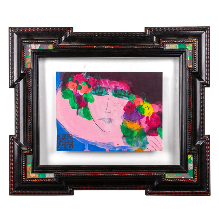tempera grassa on paper 7 67x10 03 in (frame painted by the artist 16 33x19 48 in)