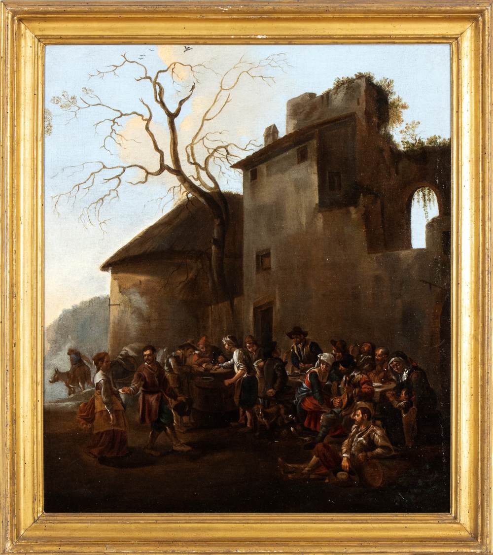 Jan Miel (1599-1663) Festa contadina Olio su tela cm. 68x59. Con cornice
