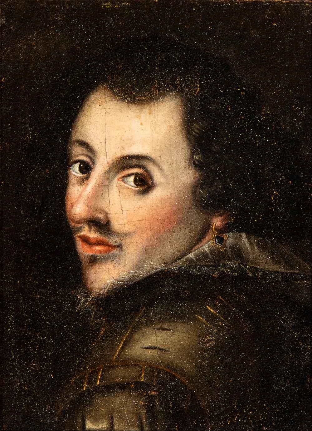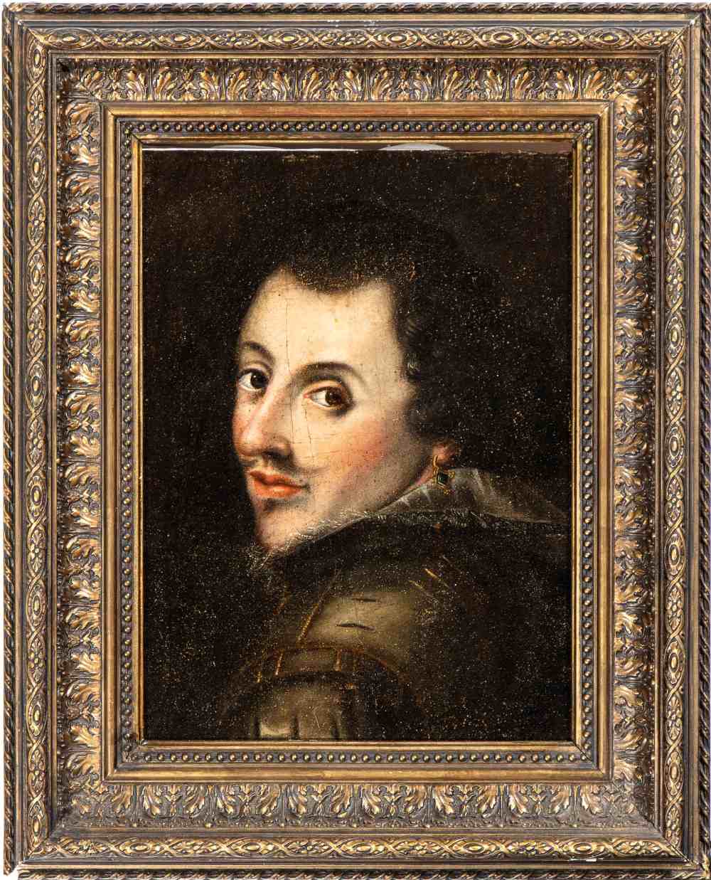Artista fiammingo, XVII secolo () Ritratto di gentiluomo con baffi Olio su...