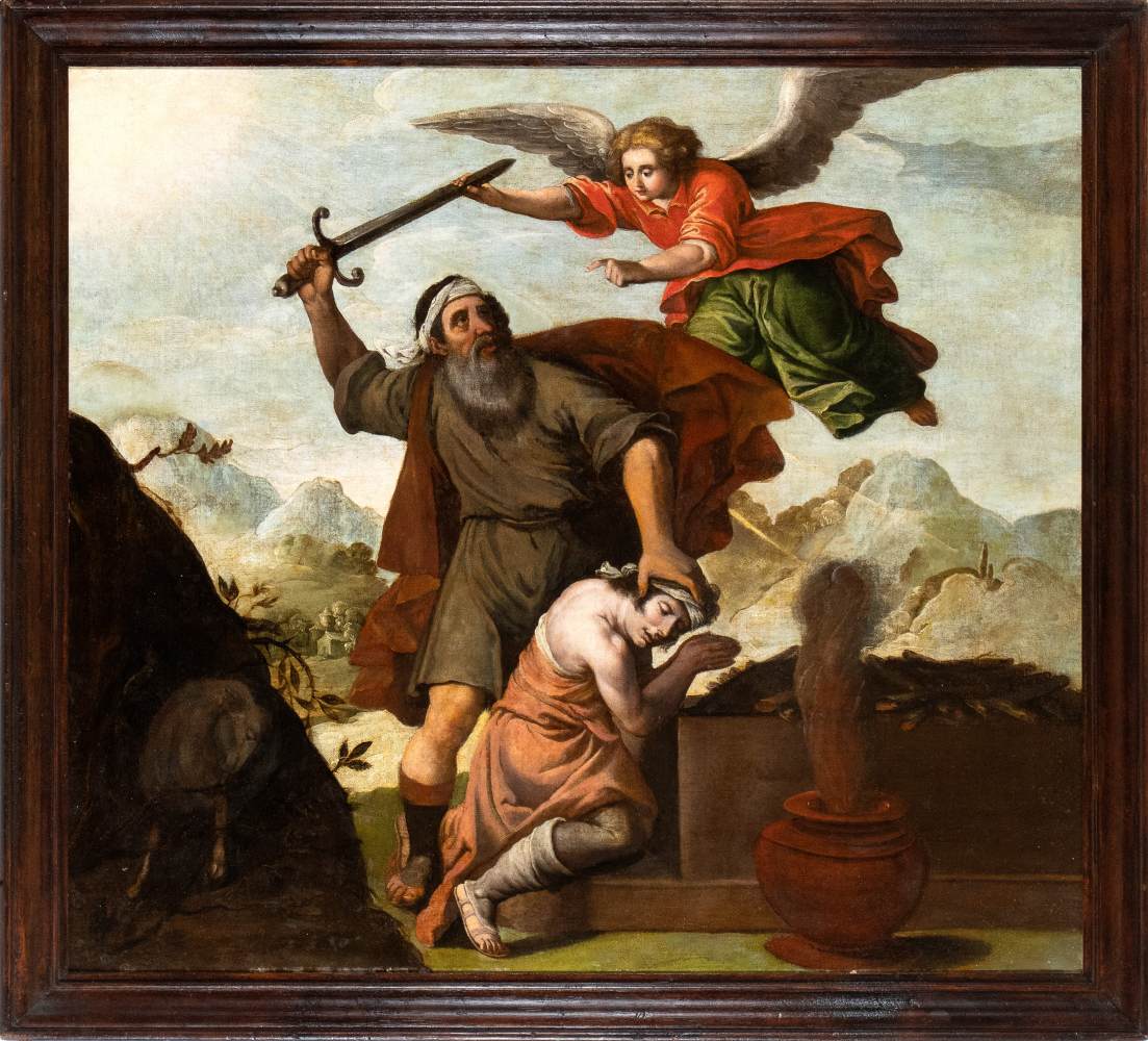 Il sacrificio di Isacco Olio su tela cm. 98,5x110. Con cornice