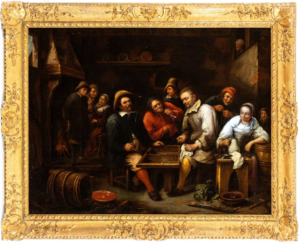 Interno di osteria con giocator di backgammon Olio su tela cm. 57x74. Con cornice