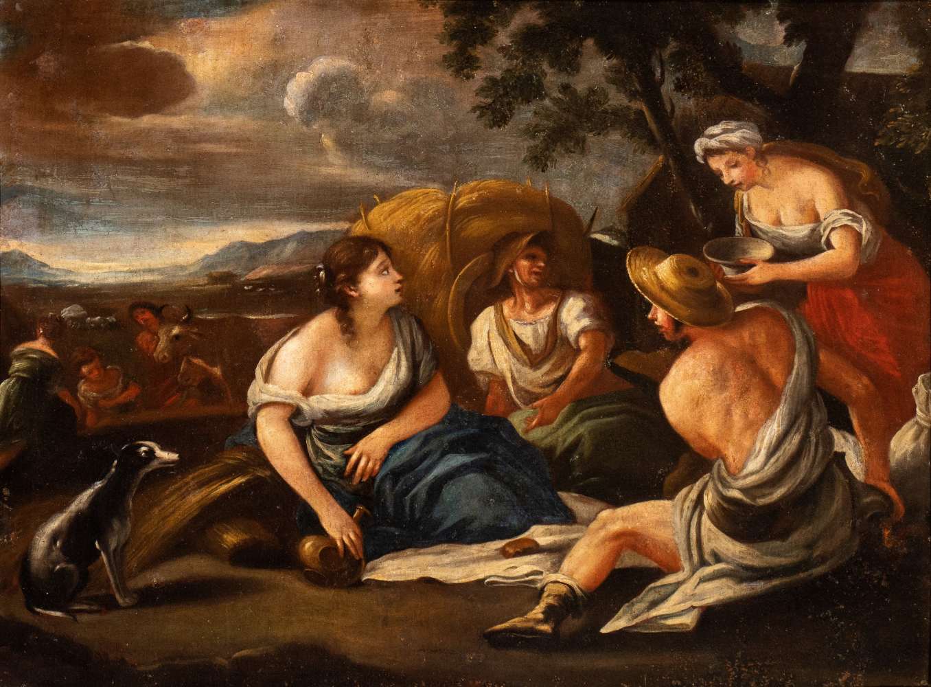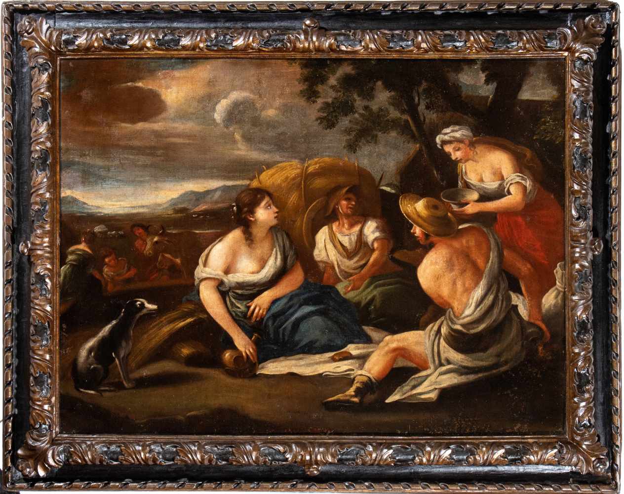 Scuola napoletana, XVIII secolo () La mietitura Olio su tela cm. 88x117. Con...