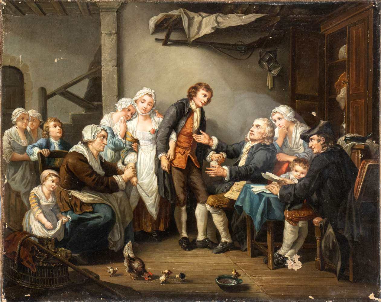 Jean Baptiste Greuze (seguace di) (Tournus 1725-Parigi 1805) Le nozze del...