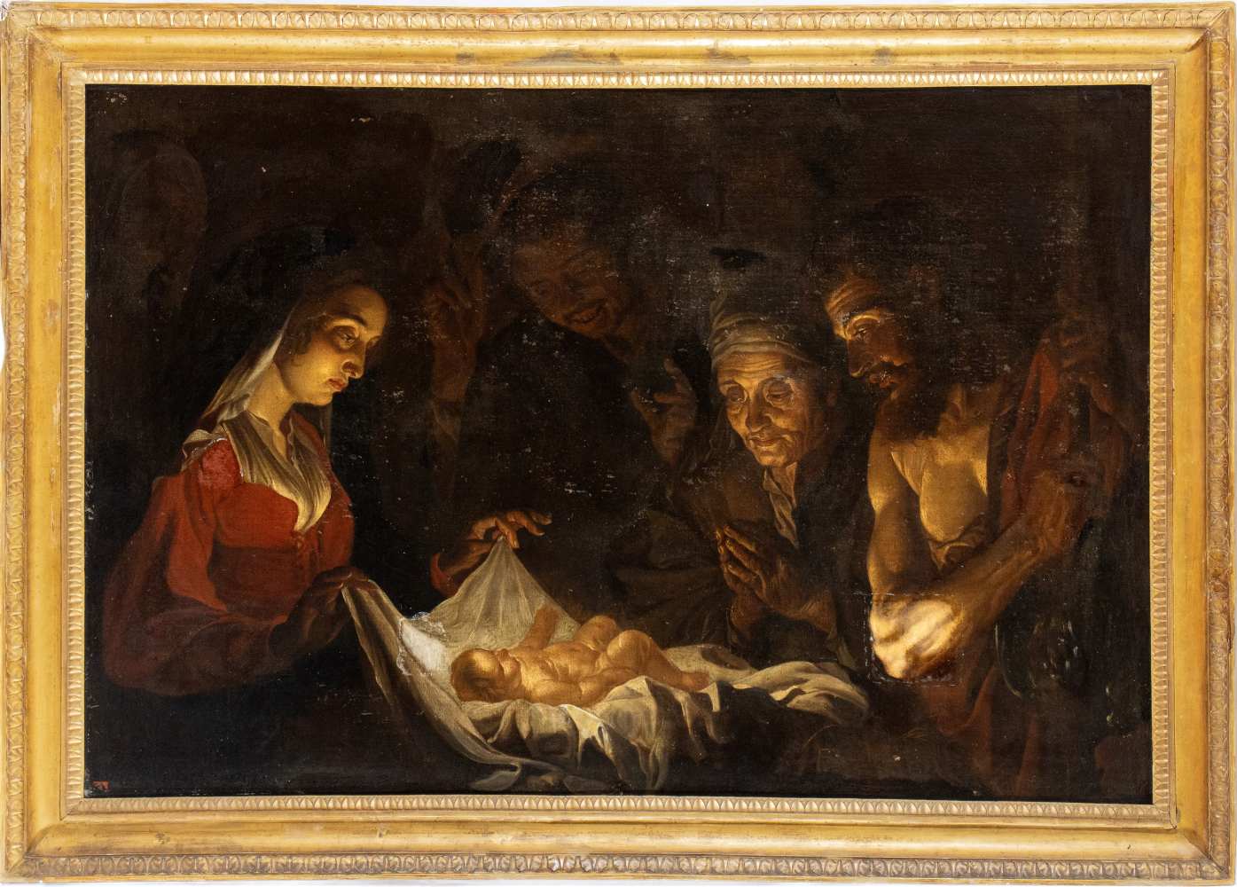 Adorazione dei pastori Olio su tela cm. 105x152. Con cornice antica