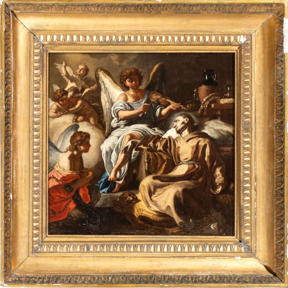 San Francesco confortato dall'angelo Olio su tela cm. 36x36. Con cornice