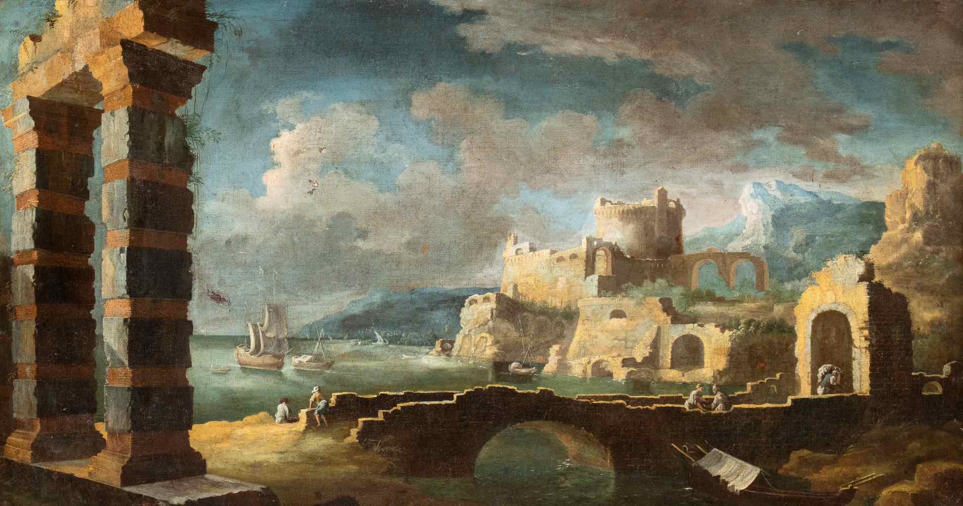 Lotto 111 | Leonardo Coccorante (Napoli 1680-Napoli 1750) Capriccio con porto e rovine...