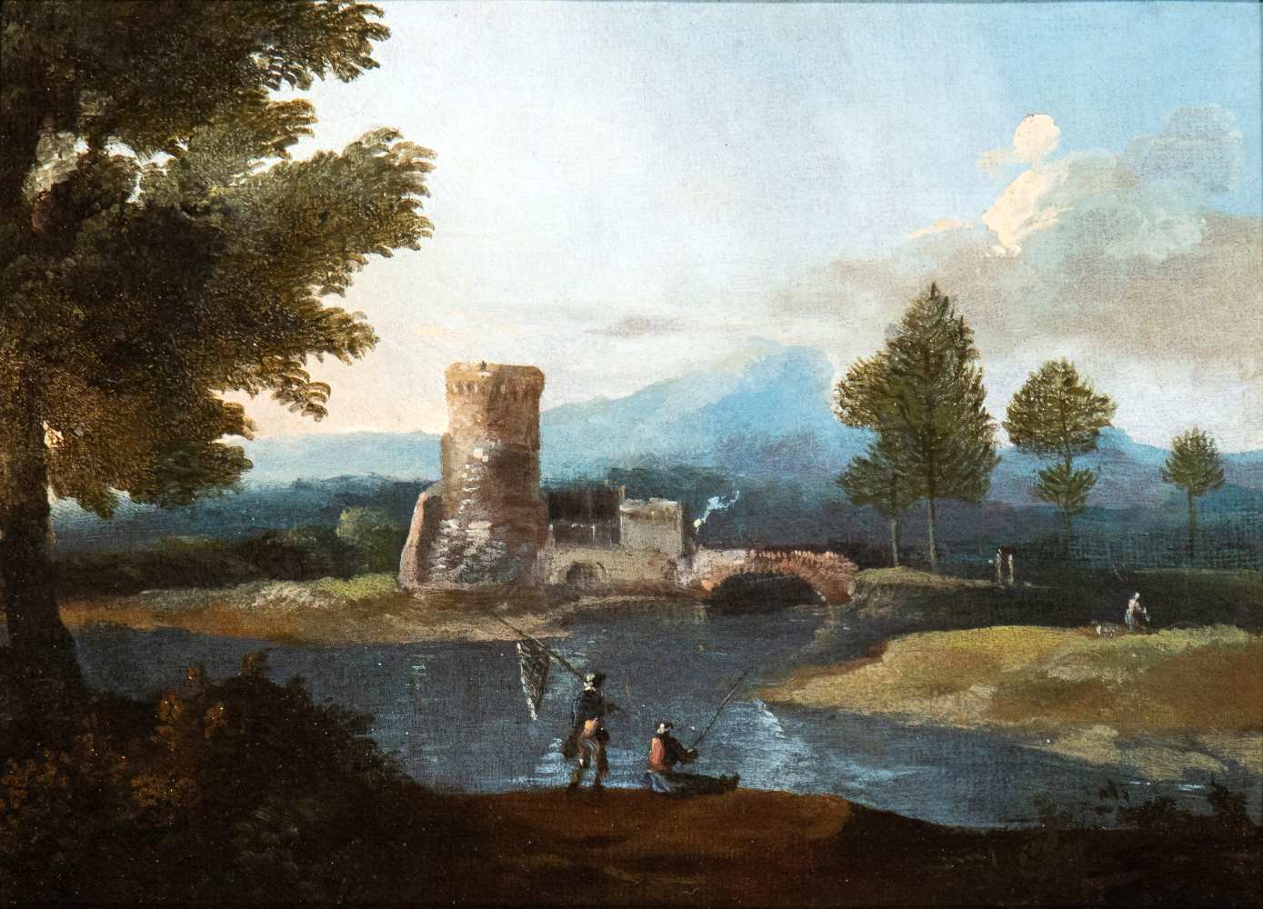Paolo Anesi (1697-1773) a) Paesaggio con fiume, ponte e due pescatori; b)...