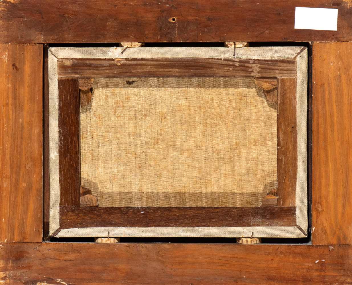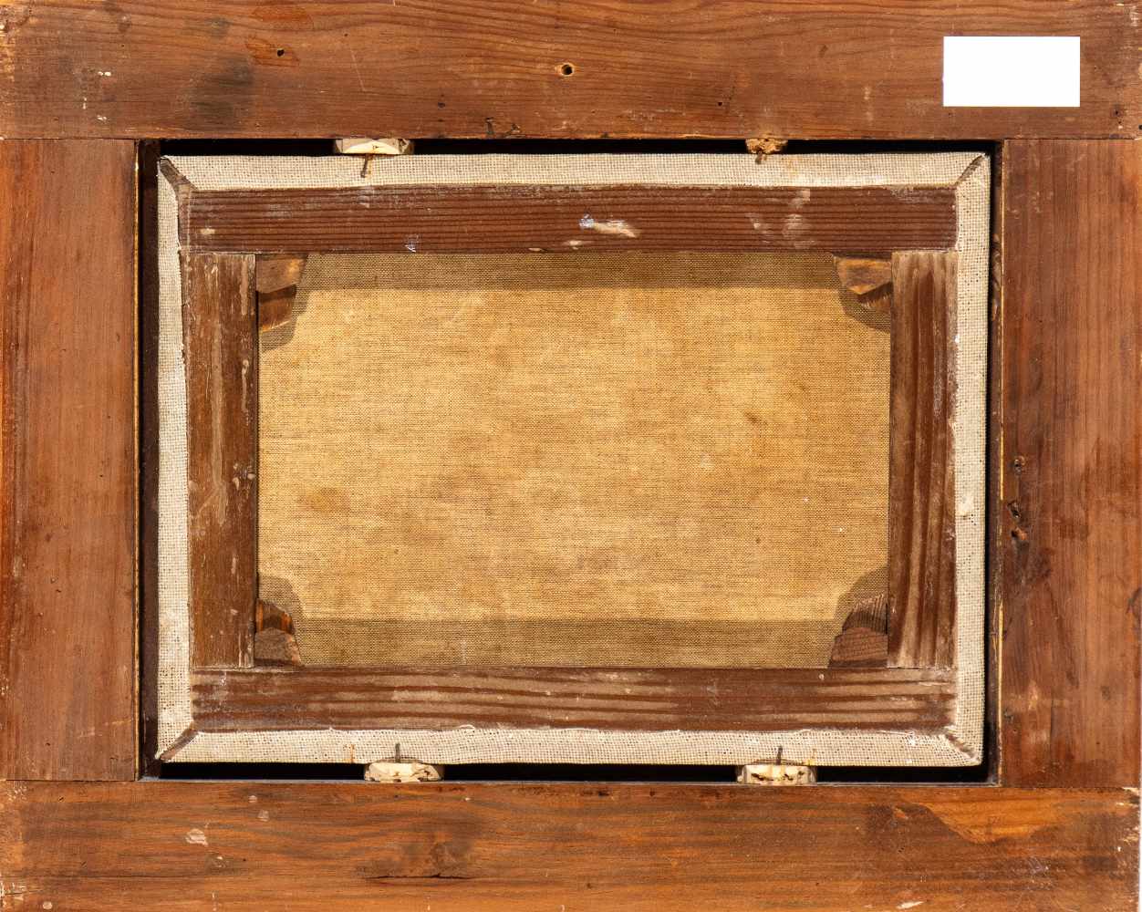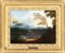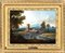 a) Paesaggio con fiume, ponte e due pescatori; b) Paesaggio con fiume, torrione e due pescatori. Coppia di dipinti Olio su tela cm. 22x29,5. Con cornice cad.