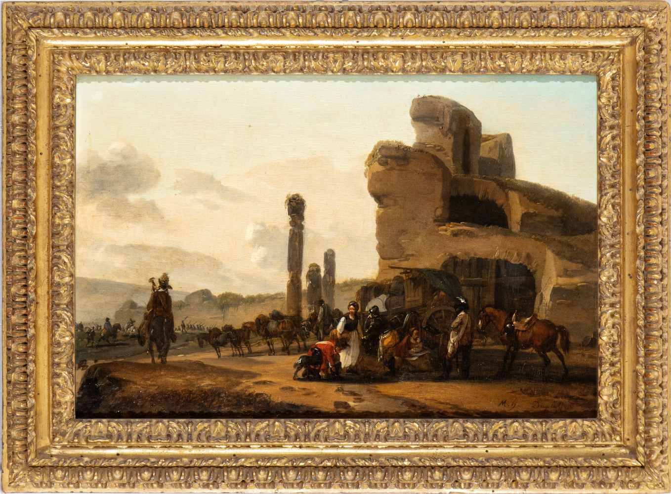 Sosta di cavalleria presso rovine romane Olio su tavola cm. 20x30. Con cornice