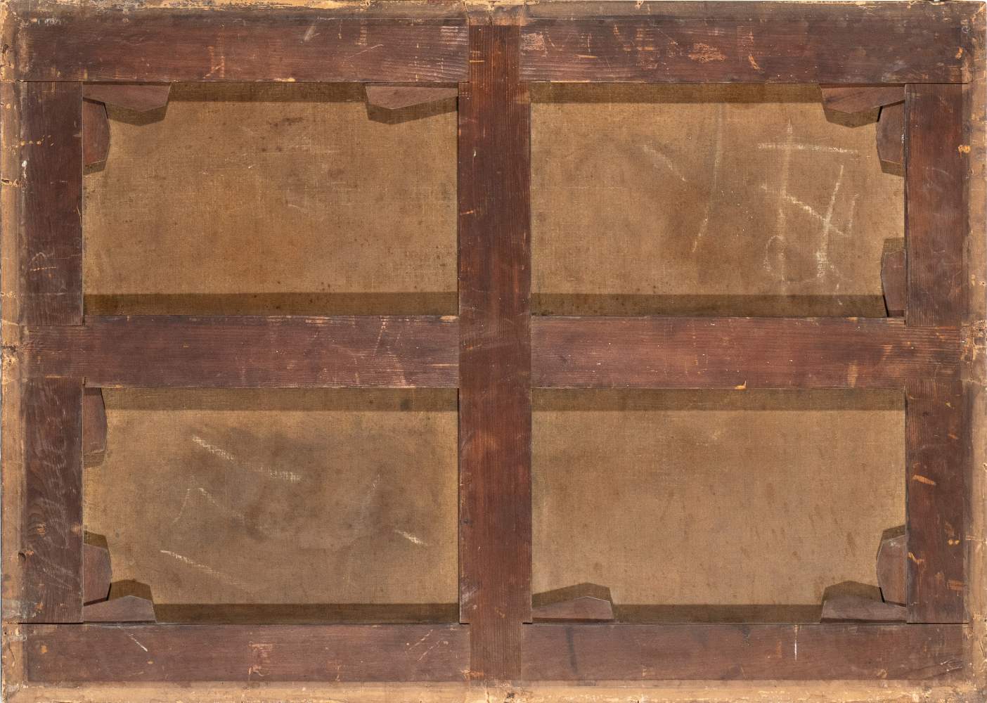 Paesaggio costiero con soldati, pescatori e imbarcazioni Olio su tela cm. 68x95
