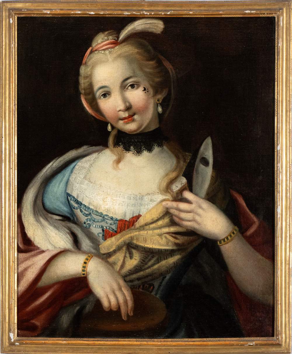 Ritratto di dama con maschera in mano Olio su tela cm. 77x62,5. Con cornice