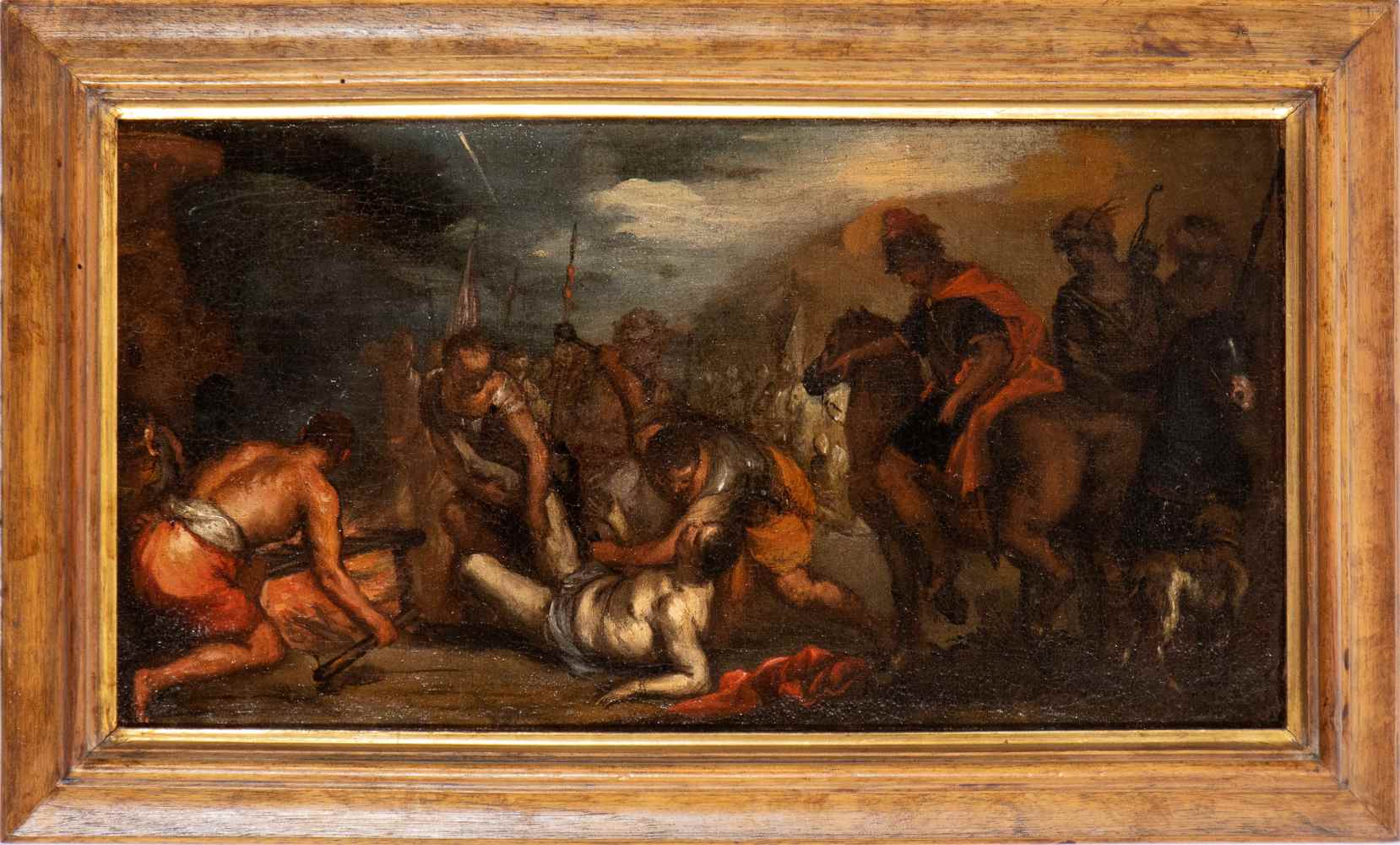 Martirio di San Lorenzo Olio su tela cm. 18x34,5. Con cornice