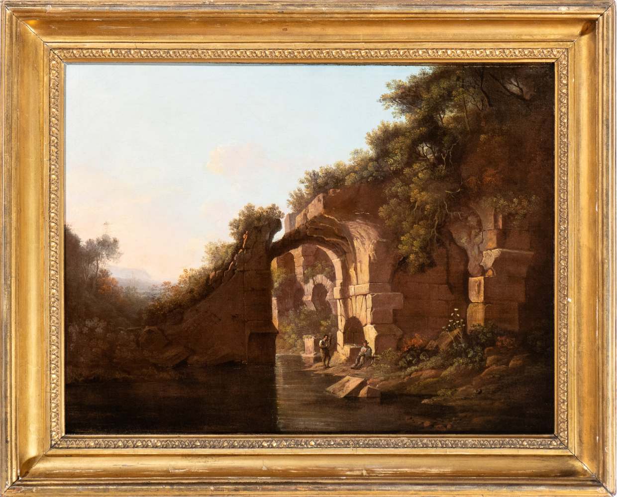 Paesaggio con ruderi e figure Olio su tela cm. 46x61,5. Con cornice