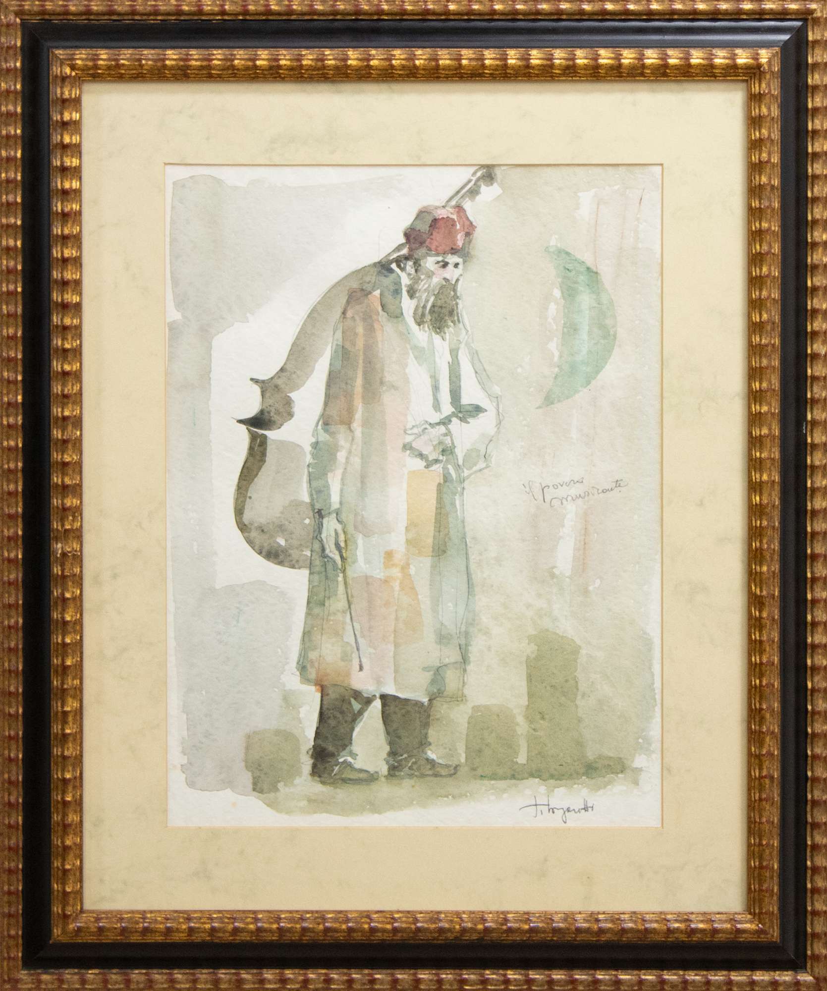 Trento Longaretti, Il povero musicante, anni Novanta, acquarello su carta, cm...