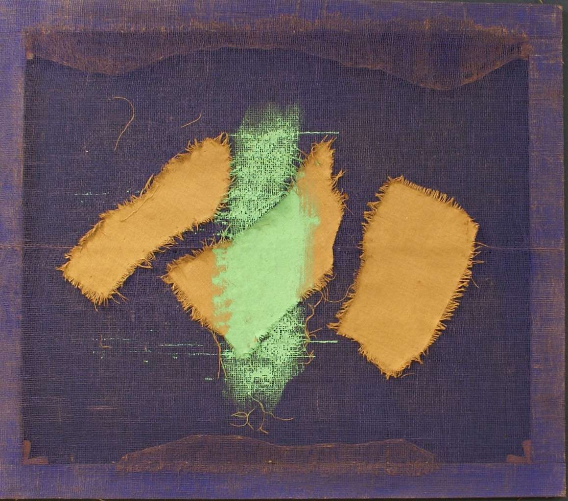 Salvatore Emblema, Senza titolo, 2005, terra colorata su tela di iuta detessuta, cm 130x150, opera pubblicata su catalogo Salvatore Emblema. Luce Colore Movimento, Marzia Spatafora - Spazio Culturale, ed. Maretti 2016 (pag. 96), autentica a cura dell'artista
