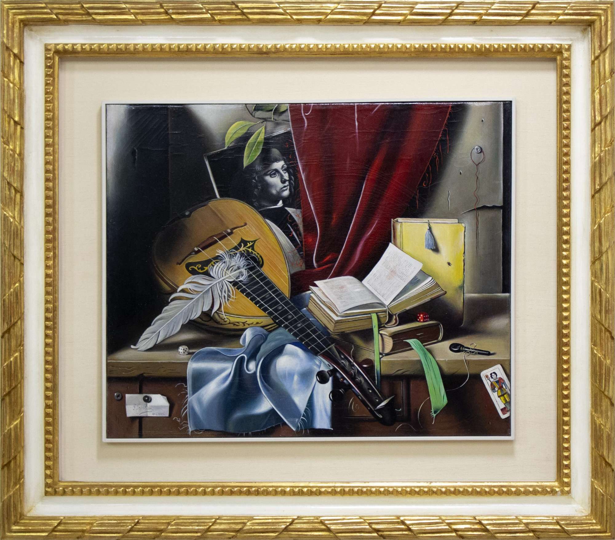 Gregorio Sciltian, Natura morta con mandolino, 1954, olio su tela, cm 50x60,2, autentica a cura di Stefano Sbarbaro, pubblicata su Enigma antico e moderno di Franco Maria Ricci