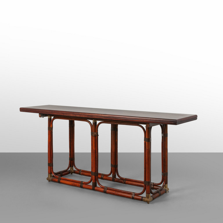 Malacca giunco cuoio legno impiallacciato in palissandro ottone.