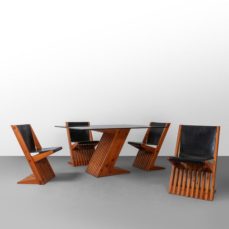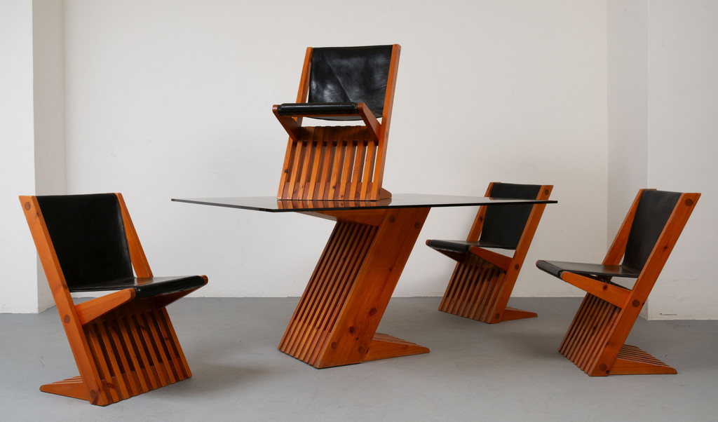 Un tavolo e quattro sedie della serie 'Intrigo'.