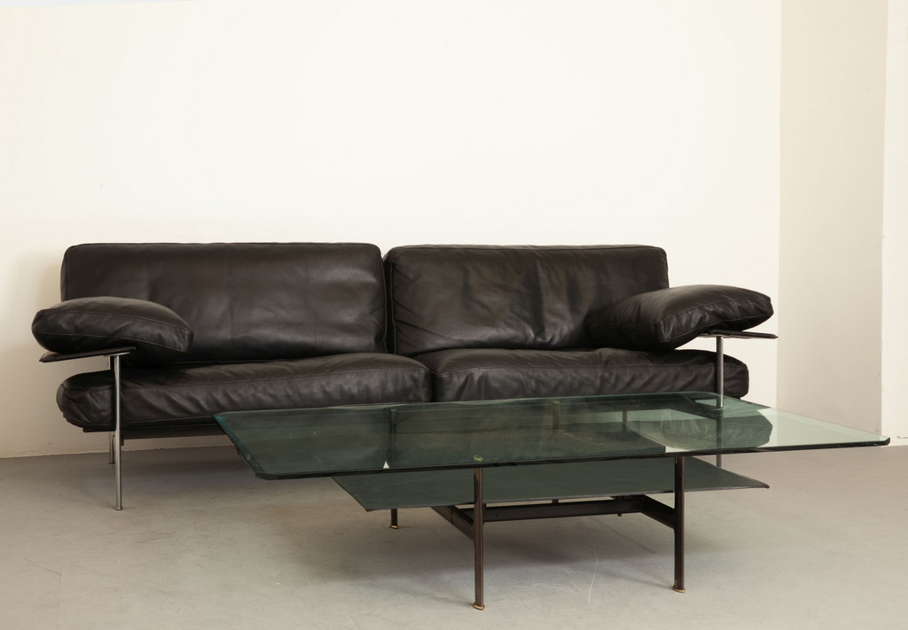 Divano: alluminio pressofuso imbottiture rivestite in pelle.