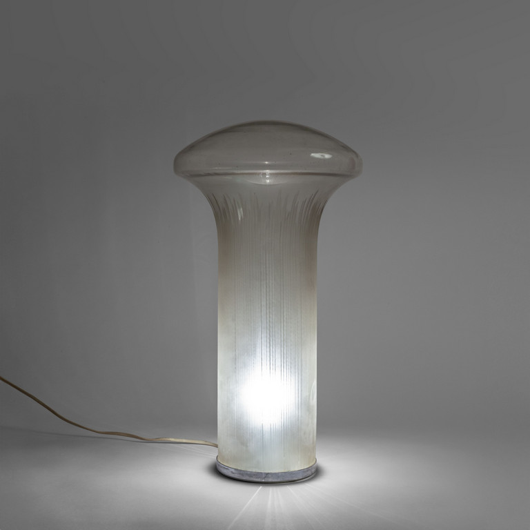 Metallo cromato diffusore in vetro soffiato e inciso.