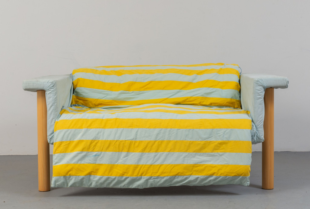 Struttura in metallo legno di faggio imbottiture rivestite in tessuto.