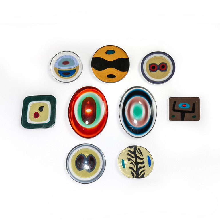 Una collezione di 9 murrine di vari disegni e colori 5 con marca incisa 'venini tw'.