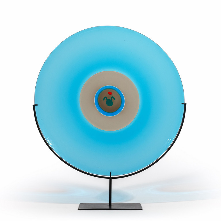 Un piatto in vetro trasparente a incalmo con murrina centrale