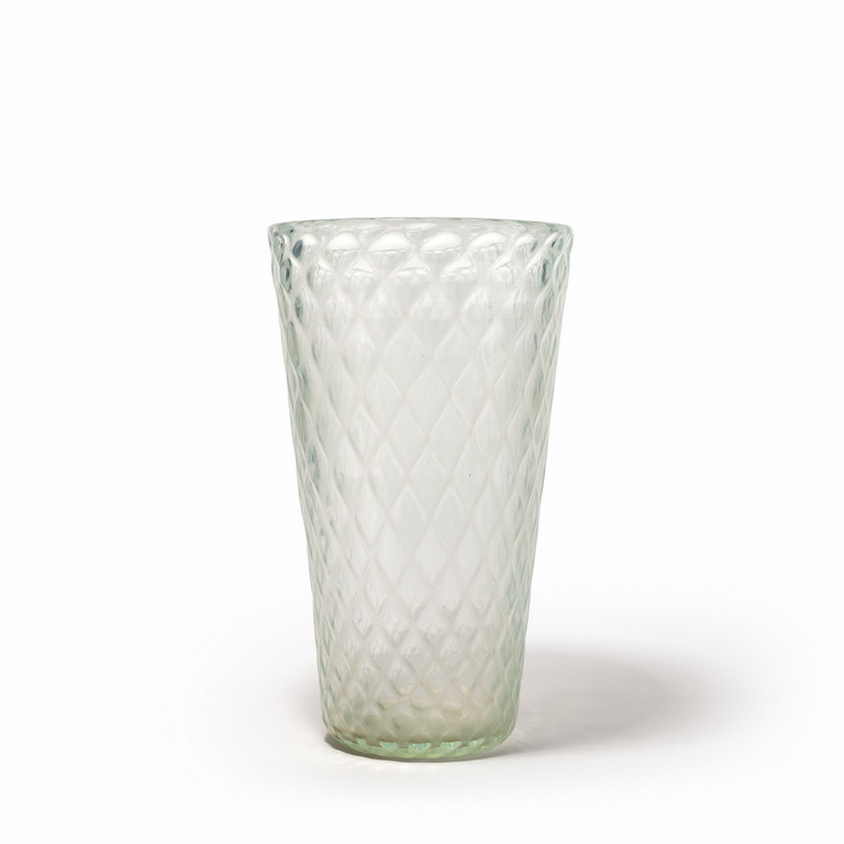 Un vaso in cristallo iridato a nido d'ape.