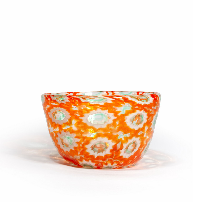 Un vaso 'rotellato' a murrine arancio con dedica autografa a Vincenzo Colonnello editore
