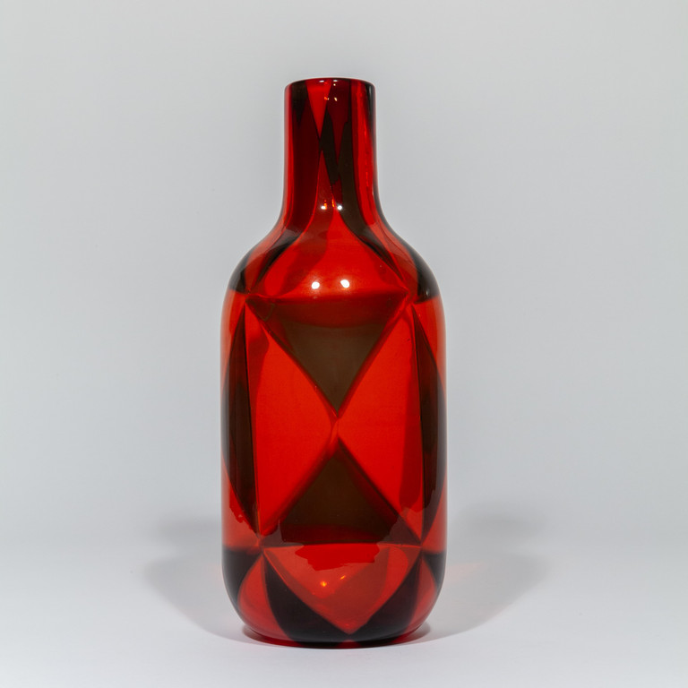 Un grande vaso 'intarsio' a tessere triangolari bicolore.