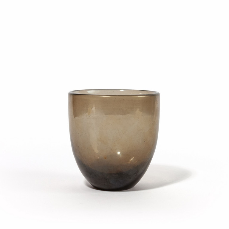 Un vaso 'iridato' in vetro fumè con superficie fortemente iridata.