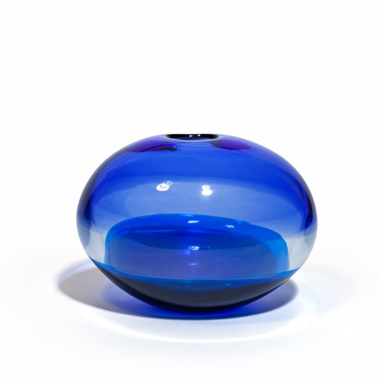 Un vaso ovale a incalmi di colore trasparente blu cristallo e acquamare.