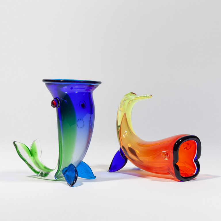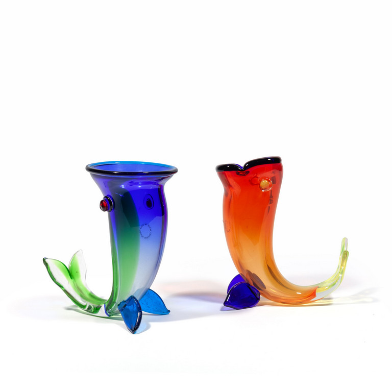 Uno rosso-arancio marca incisa 'venini 93 fulvio bianconi' etichetta originale. H. cm. 15.