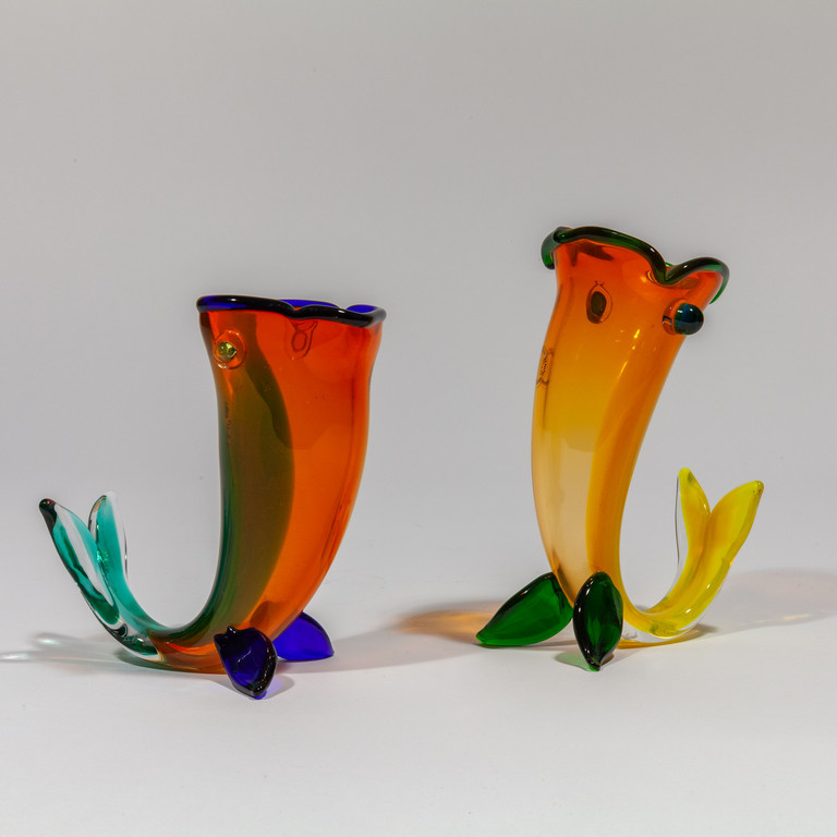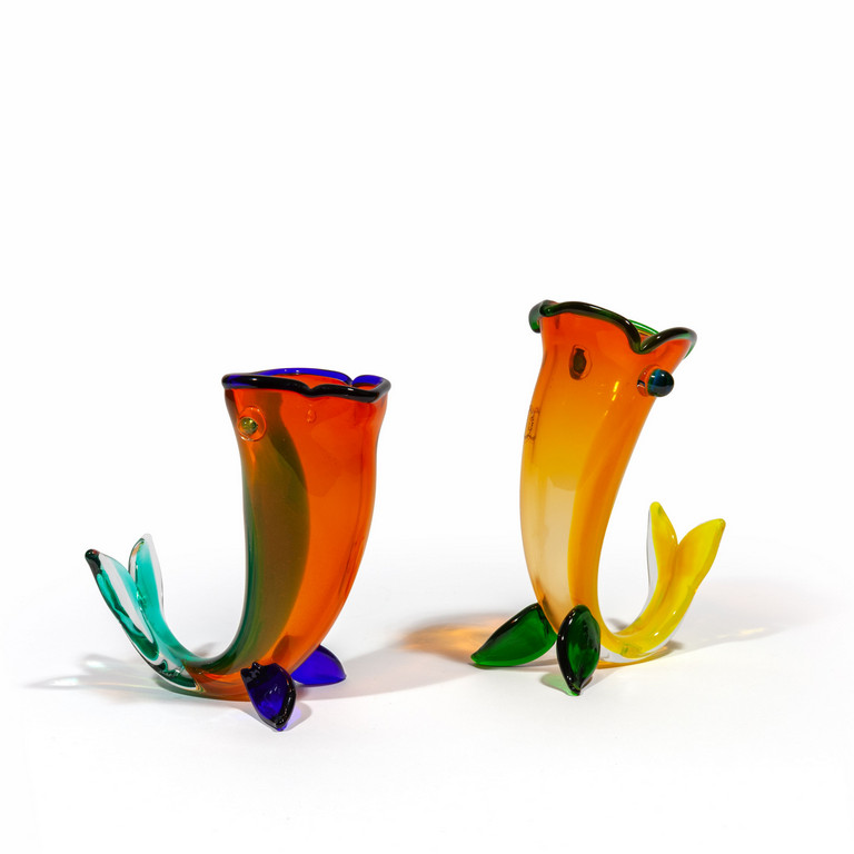 Uno giallo-arancio marca incisa 'venini 95 fulvio bianconi' etichetta originale. H. cm. 16.5.