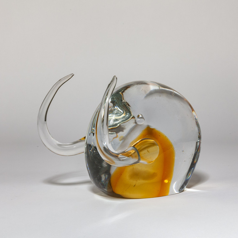 Una figura di mammut in cristallo pesante sommerso ambra.
