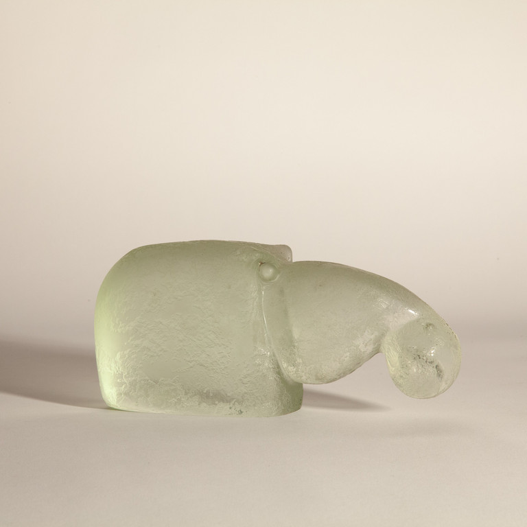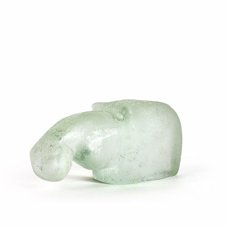 Una figura di ippopotamo in cristallo corroso ad acido.