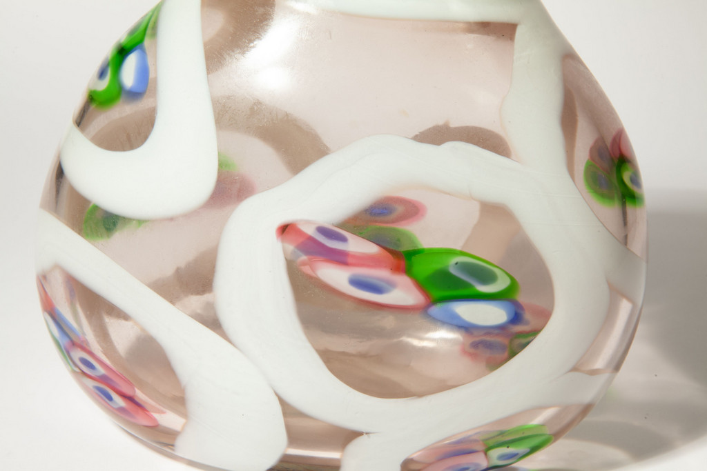 cerchi irregolari lattimo contenenti tre o quattro murrine colorate.
