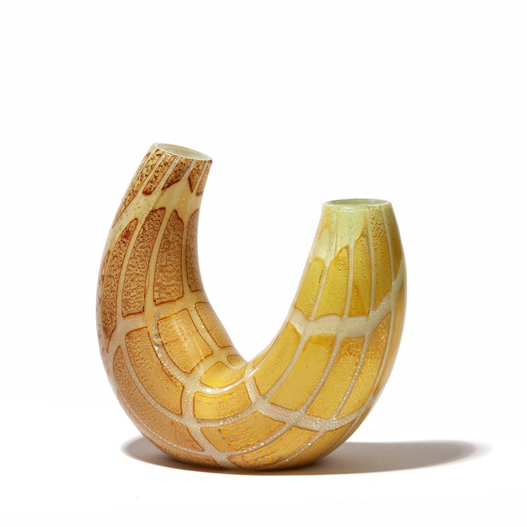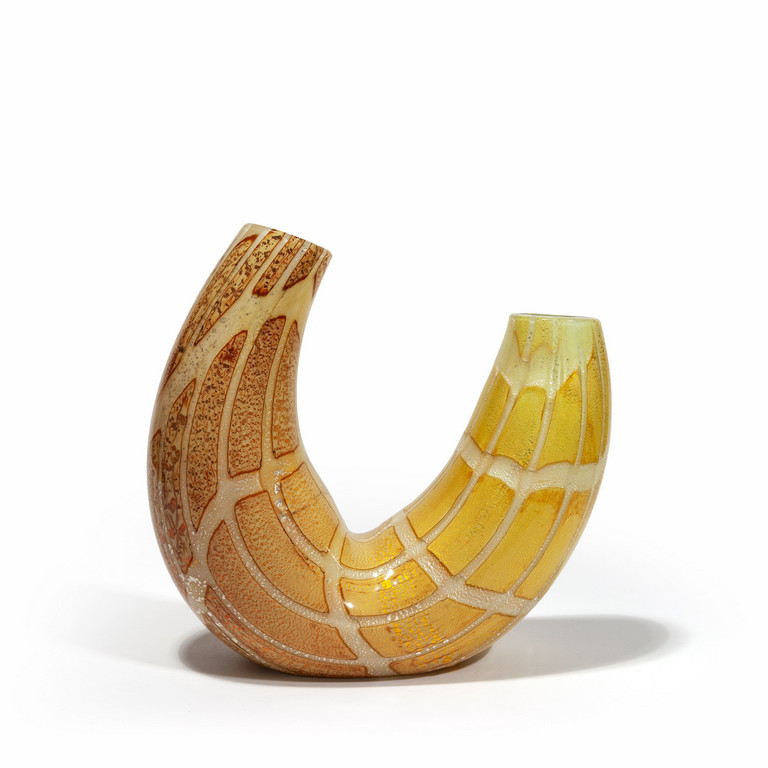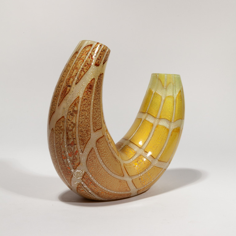 Un vaso 'Rombi' con tecnica a reazioni policrome a due colli con losanghe definite da